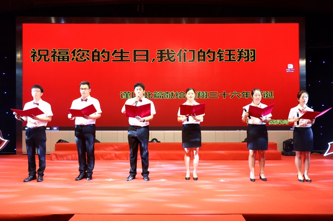 活動首先舉行“筑夢鈺翔、感恩同行”慶祝鈺翔控股集團創立36周年朗誦比賽,本次比賽集團各公司共組織8支隊伍,大家以飽滿的熱情、良好的精神面貌和豐富多彩的表現形式展現了鈺翔人的努力工作、奮力拼搏的形象,每支隊伍分別從不同角度回顧了鈺翔36年的發展史,描繪了百年鈺翔的宏大愿景,表達了集團感謝員工、員工感恩集團、感恩同事、愛集團、愛同事的情懷,激勵全體員工發揚鈺翔人銳意進取、求實創新的優良傳統,為加快推進集團轉型升級、跨越發展做出新的更大的貢獻。
